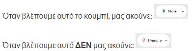 · Καθ’ όλη τη διάρκεια της τηλεδιάσκεψης, για αποφυγή φασαρίας κρίνεται σκόπιμο τα μικρόφωνα των μαθητών να παραμείνουν κλειστά και να ανοίγουν όταν τους δίνεται ο λόγος από την εκπαιδευτικό ή όταν θέλουν να ζητήσουν τον λόγο (να θέσουν ερώτημα, να δώσουν απάντηση…)