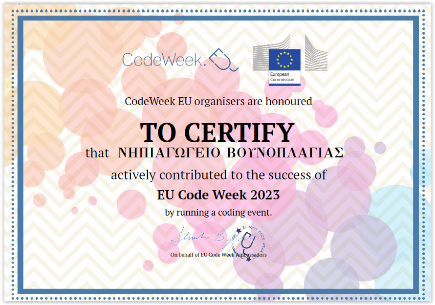Let’s code with animals-Συνεργασία με ομάδα σχολείων-Πιστοποιητικό συμμετοχής